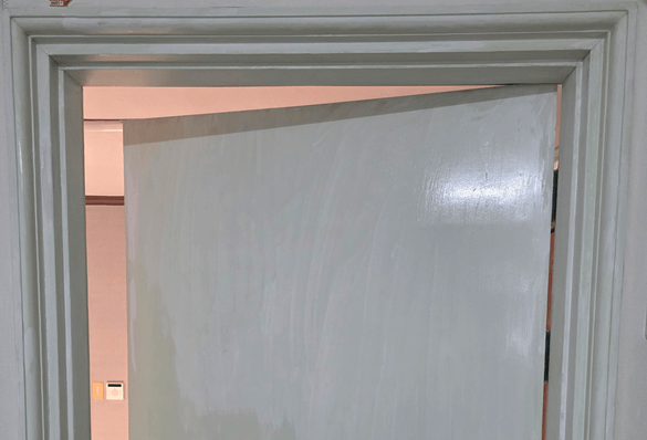 까진 부분 위주로 젯소를 바른 후 양이 남아서 문틀과 문 위쪽 부분 중심으로 발라주었습니다. 이제 잘 마르기만 기다리면 됩니다.