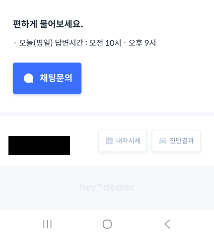 평가사분이 도착하면 15분 정도 꼼꼼하게 차량 내외관을 살피시면서 사진을 찍습니다. 시동도 걸어보시고 여기저기 필러도 다 뜯어보시면서 사진을 찍으시고 확인을 합니다. 하시는 중 앱에서 내 차에 대하여 스스로 평가하는 걸 작성하라고 하십니다.